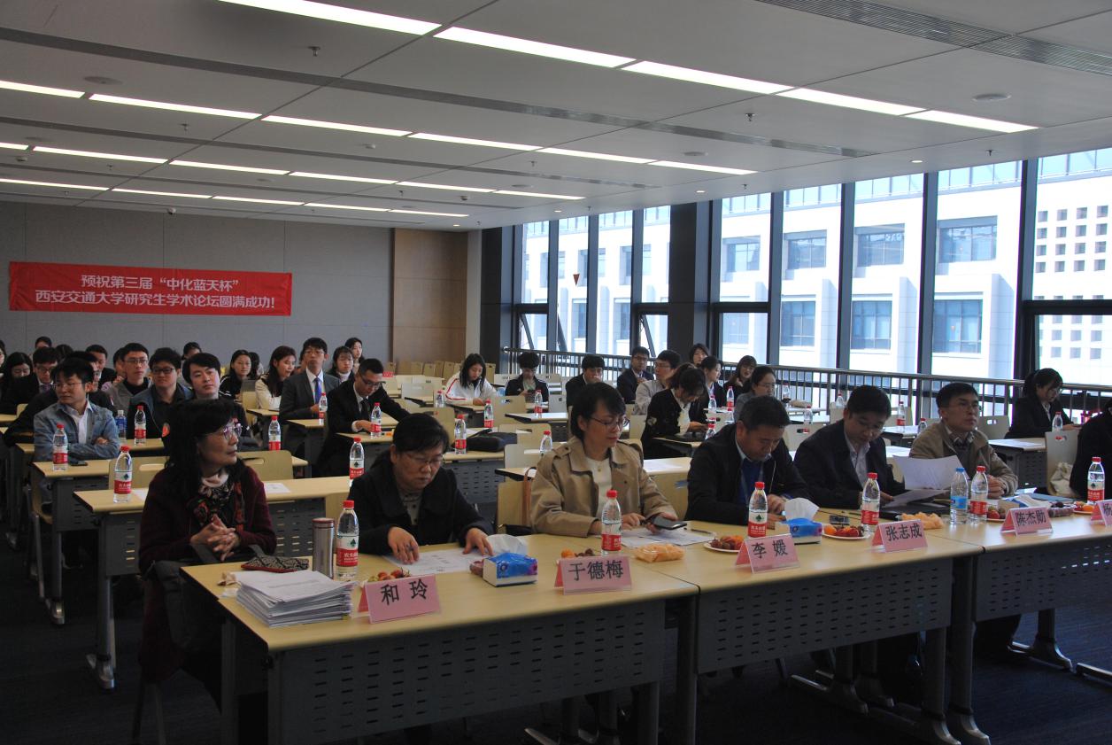 11月6日,必赢唯一官方网站在创新港泓润楼19-4110举办了第三届“中化蓝天杯”西安交通大学研究生学术论坛。本次论坛邀请到中化蓝天集团人力资源部副总经理李媛、中化蓝天集团有限公司战略规划部副总经理、浙江省化工研究院副总经理陈杰勋、必赢唯一官方网站党委书记张志成教授、必赢唯一官方网站于德梅教授、和玲教授、化工学院杨庆远教授担任答辩评委。论坛吸引了来自必赢唯一官方网站、能动学院以及化工学院百余名研究生参加。
