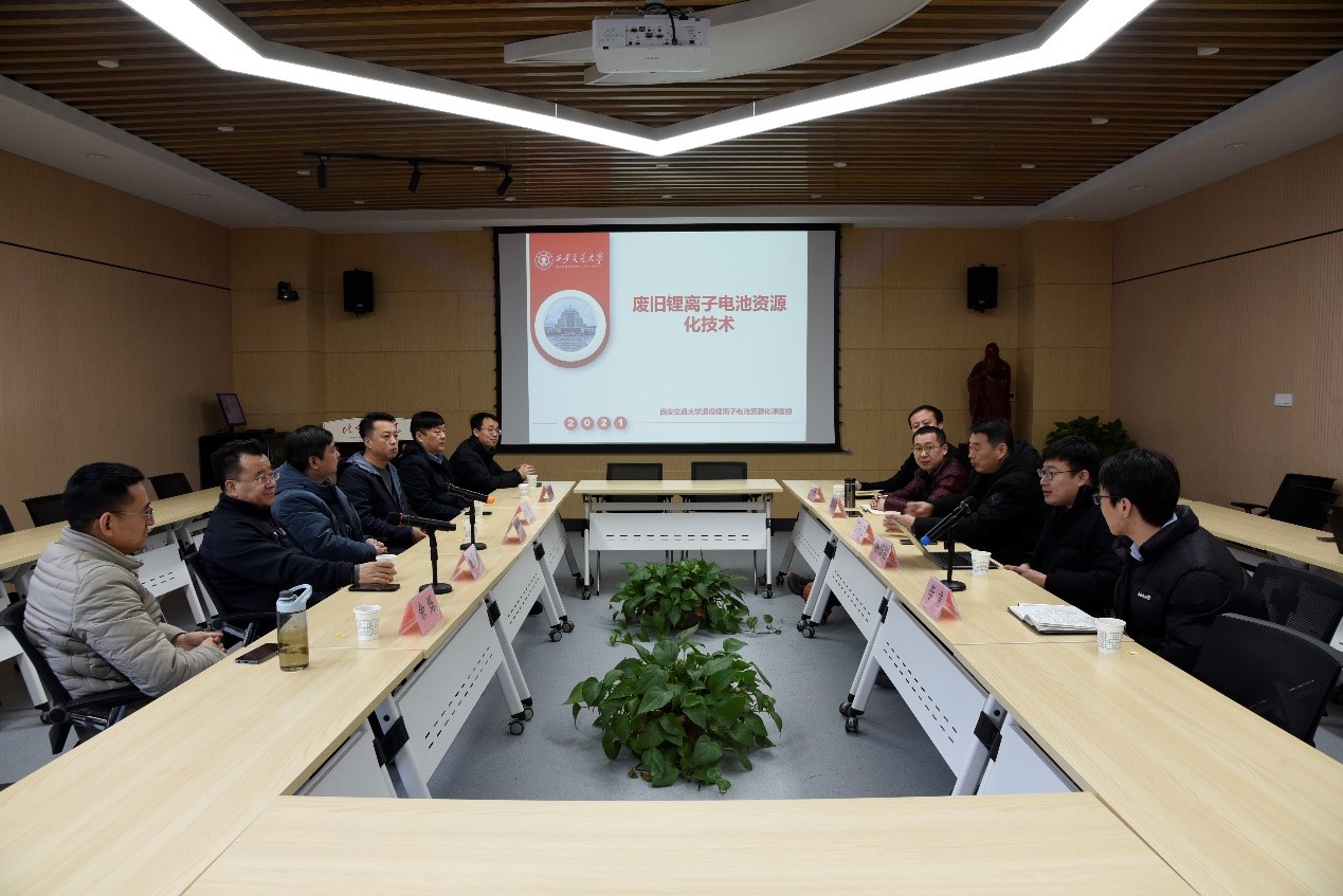 2月6日早上,陕西省商务厅相关领导率中国民用航空西北地区管理局适航维修处余烁处长、华中集团的董事长鲁振华、中兴环保科技的尚丹董事长、华中集团副总鲁小兵等一行来访创新港化学研究院。必赢唯一官方网站院长丁书江、副教授杨国锐等与董志彬一行就废旧锂离子电池资源化等项目进行合作洽谈。