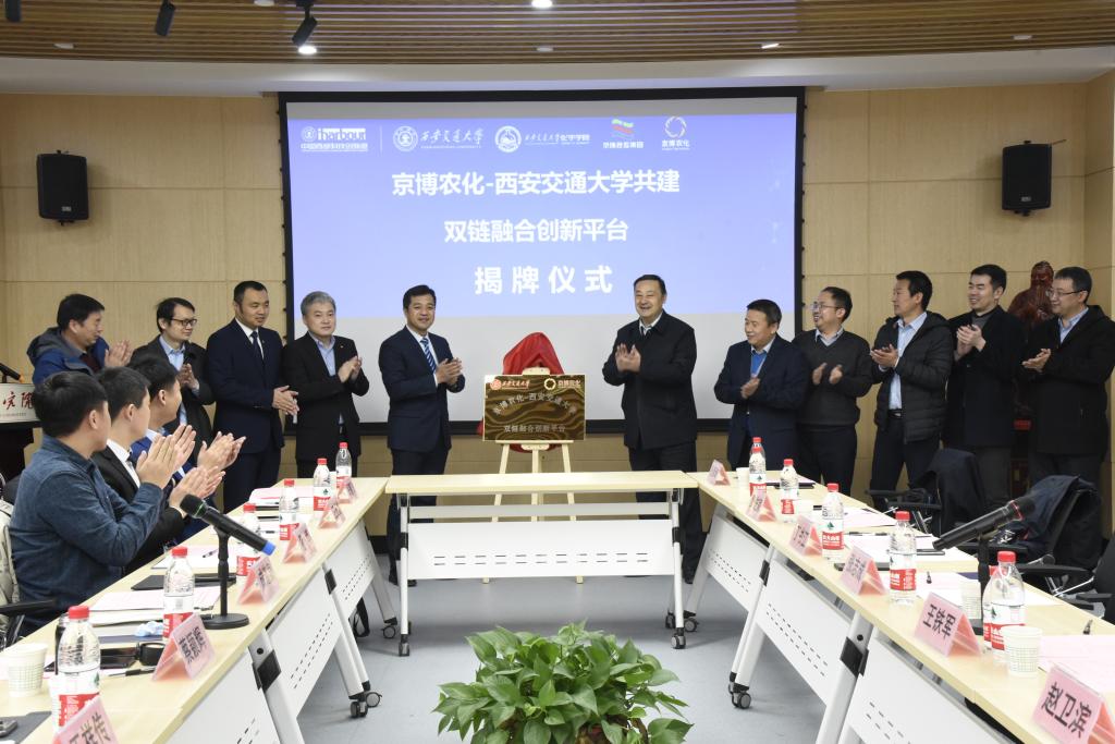 3月7日早晨,必赢唯一官方网站与京博农化科技有限公司共建双链融合创新平台签约仪式在创新港泓润楼化学会议室举行。山东京博控股集团董事、高级副总裁蔡颖辉,董事、京博农化董事长兼总经理成道泉,西安交通大学副校长王铁军、必赢唯一官方网站党委书记张志成、院长丁书江出席签约仪式。签约仪式后,西安交通大学党委书记卢建军会见来宾。