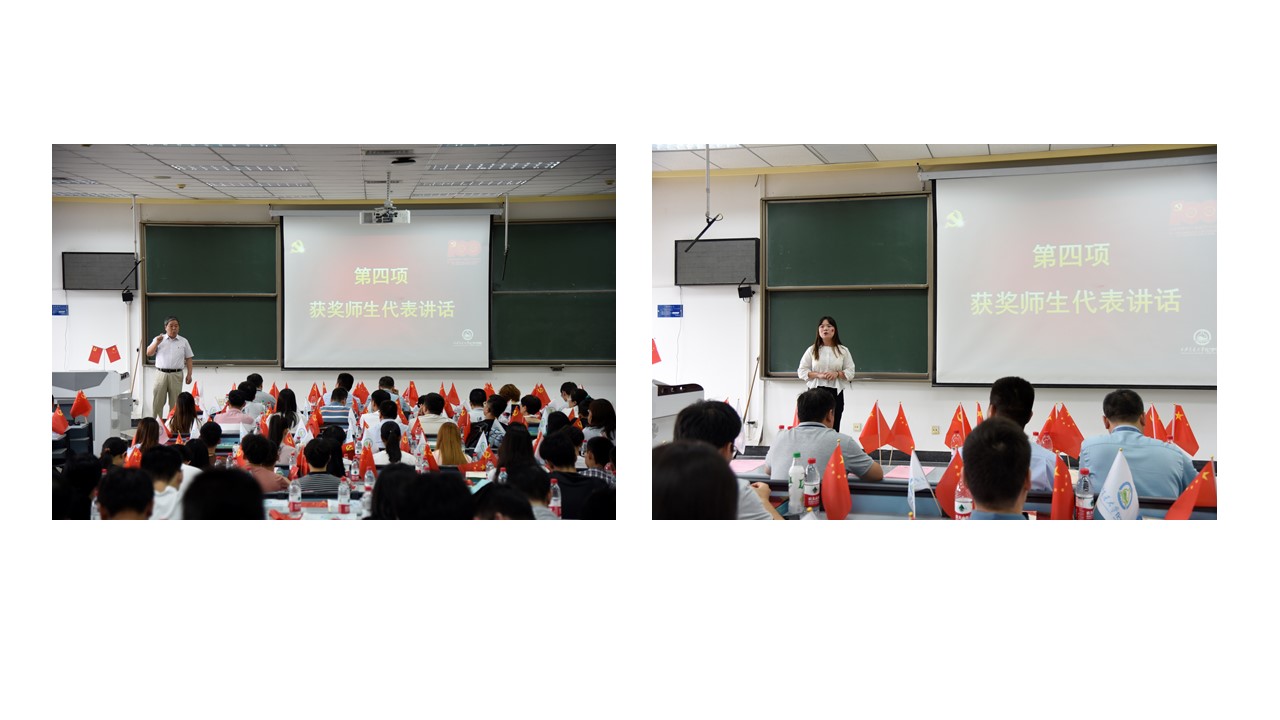 张志成首先对2021年度“两优一先”先进集体和个人以及为学院做出突出贡献的师生表示祝贺。他回顾习近平总书记在庆祝中国共产党成立100周年大会上的重要讲话。习近平总书记全面回顾我们党100年来团结带领中国人民不懈奋斗的光辉历程,展望党和人民事业发展的光明前景。