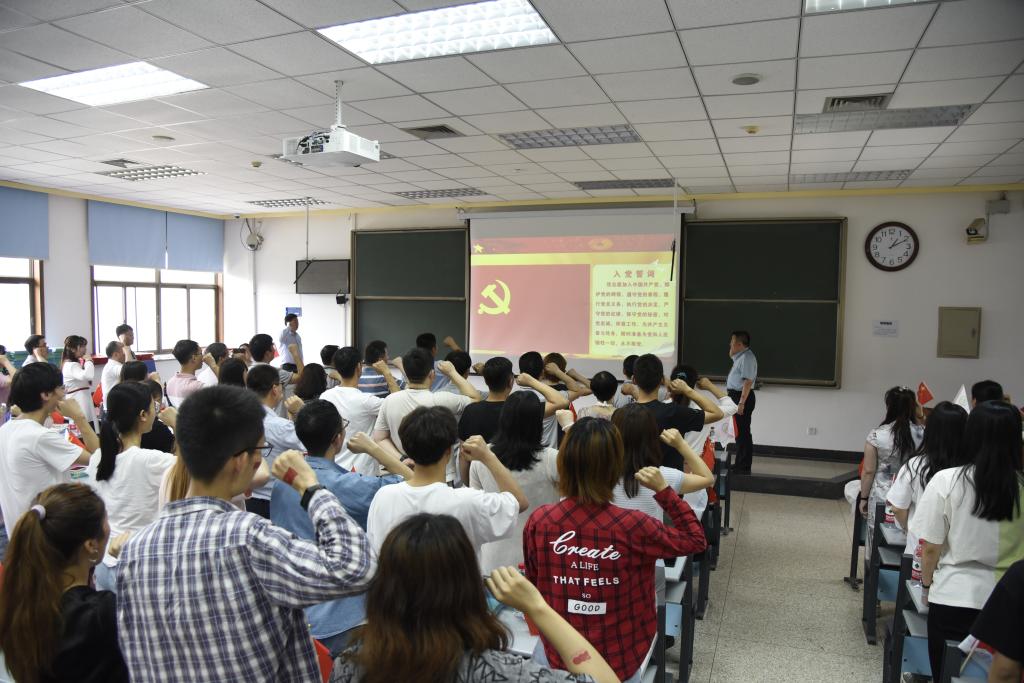 奋斗百年路,启航新征程。在庄严的国歌下,会议拉开序幕。在张志成的领誓下,与会人员面对鲜红的党旗,右手举拳,神情肃穆,声音洪亮,庄严宣誓。掷地有声的铮铮誓言,表达了每位共产党员崇高的理想信念和价值追求。