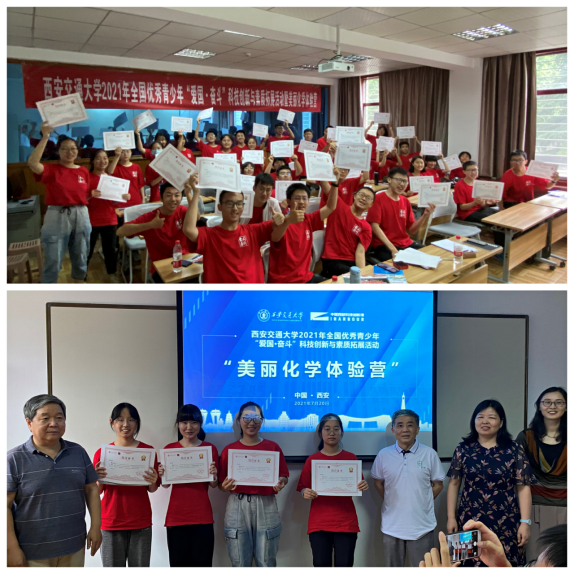 7月23日,为期五天的西安交通大学2021年全国优秀青少年“爱国·奋斗”科技创新与素质拓展活动暨美丽化学体验营顺利闭幕。来自全国各地的35名优秀高中生参加了此次实践体验活动,活动包括新营员破冰团建、感悟百年交大文化、聆听教授专题报告、探索神奇化学世界、体验化学实验实训等内容。