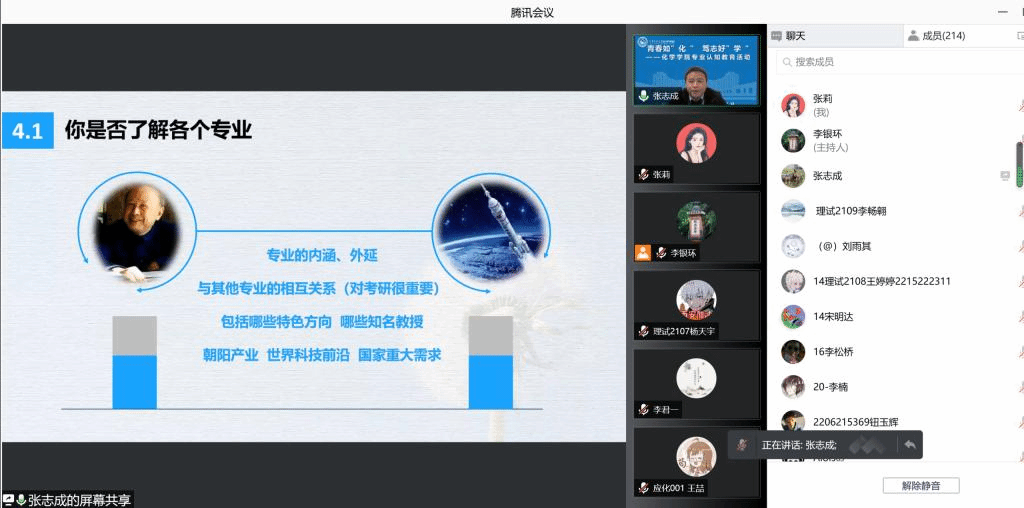 专业认知教育会持续两个多小时,200余位同学全程在线,同学们结合自身选择的一些问题与学院各位老师亲切互动,一条条流动的字幕表达了同学们对学院的由衷感谢,李君一同学的一首藏头诗表达了对学院的真挚情感:感君心自远,谢我意何长。化作千年鹤,学成一世香。