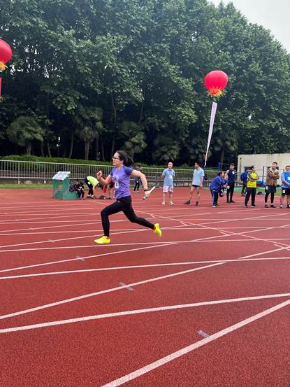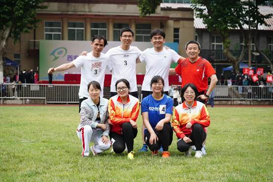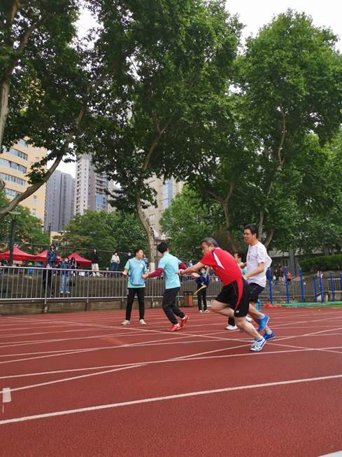 团体赛不仅仅需要个人的努力,更考验的是团队的团结与协作。在教工男子4*100米接力跑中,我院张志成、李静、成一龙和肖春辉在跑道上身姿稳健、斗志昂扬、取得第三名的好成绩!在教工女子4*100米接力跑中,我院教职工林培玲、武莹、向丹和龚红红在跑道上斗志昂扬、奋勇拼搏,取得第五名的成绩!