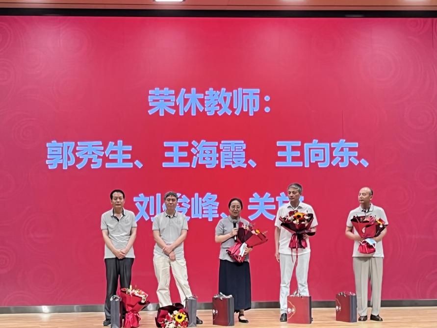 在5位教师的发言中,“合作愉快”和“极其自豪”是他们留给自己职业生涯最多的评价,他们也对后辈提出了要踏实做事、攻坚克难的寄语。6月16日院庆日恰逢郭秀生老师60岁生日,全场同唱生日歌向郭老师表达生日的祝贺,青年教师也纷纷上台,和郭老师共同分享蛋糕、传递喜悦。