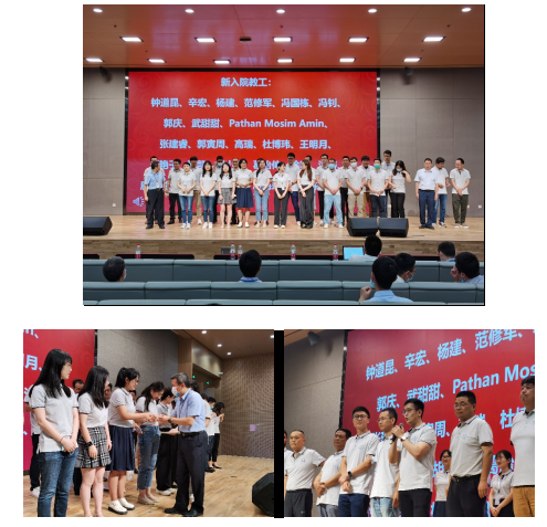 大会第二部分举行新聘教职工入职仪式。过去的一年,共有26位新聘教职工加入必赢唯一官方网站大家庭,他们有着不同的学科背景和求学经历,以青年人的蓬勃朝气续写化学人的西迁故事。26位新聘教工从张志成和丁书江手中接过配发的院徽,并依次进行自我介绍,他们分别表达了自己对于未来工作的热切期待以及对学院发展前景的坚定信心。