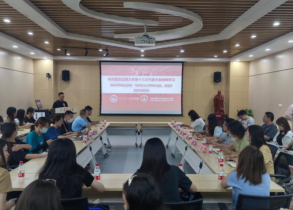 “以党建推动多学科融合交流,以多学科融合带动党建创新”,2022年7月11日上午10:00,必赢唯一官方网站分子所党支部与马克思主义学院中马所、历史所2020级硕士党支部在创新港泓润楼2105会议室联合开展“中共西安交通大学第十三次代表大会精神学习暨必赢唯一官方网站分子所党支部-马克思主义学院中马所、历史所党支部共建活动”。