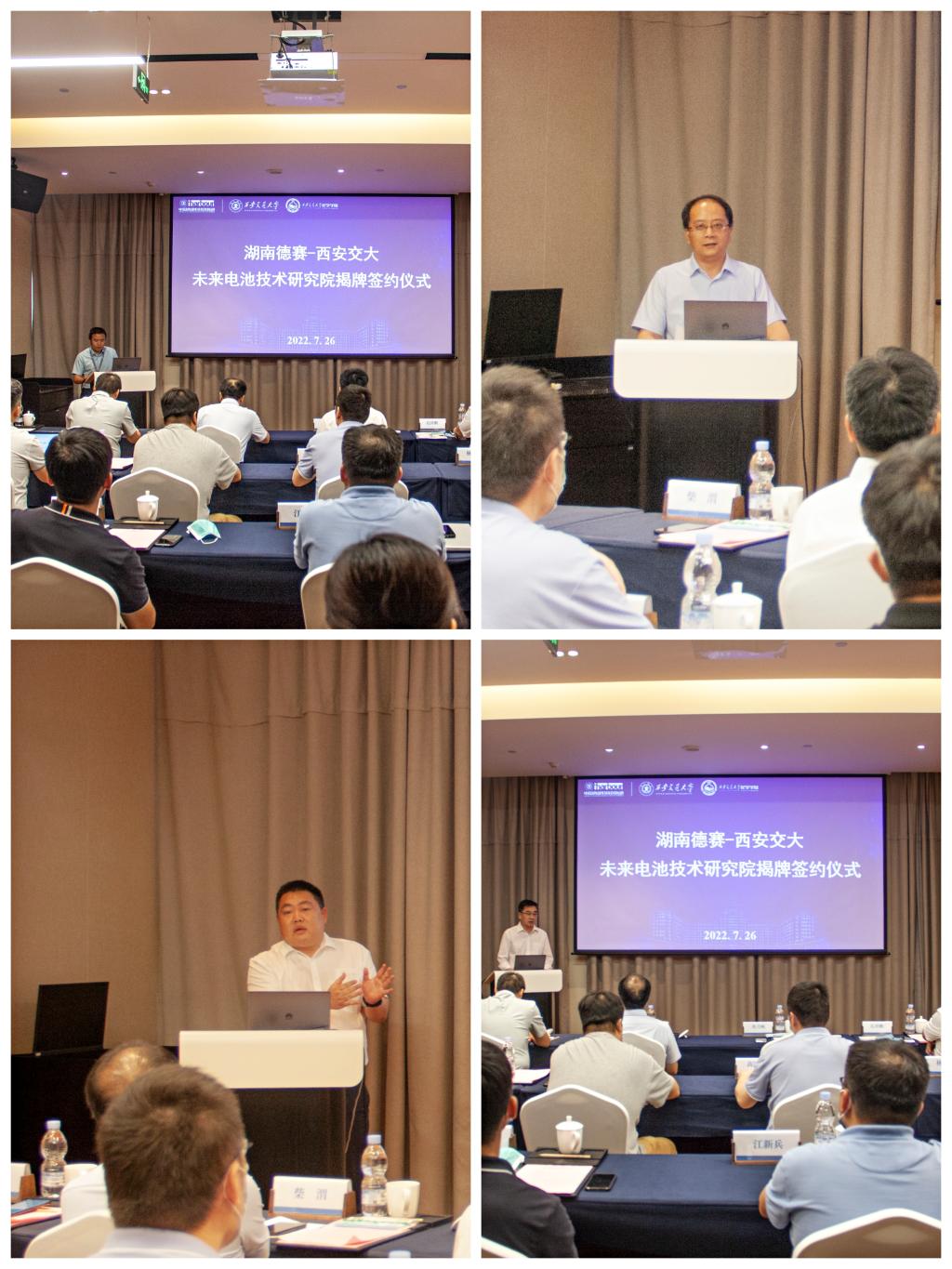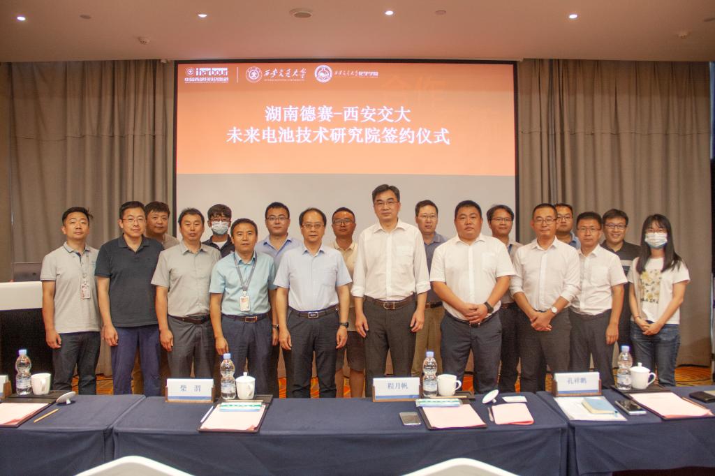 双方代表签署“湖南德赛-西安交大未来电池技术研究院合作协议”,根据协议,双方将依托中国西部科技创新港,围绕研究院的搭建、高层次人才的培养及前瞻性项目的研究,结合双方发展需求,加强在新型锂电池、宽温域电池、固态电池、钠离子电池、锂空气电池、锂硫电池、氢燃料电池、动力电池梯次利用及资源化回收等领域的技术创新、人才培养、人才引进、新产品开发、成果转化等方面的合作。