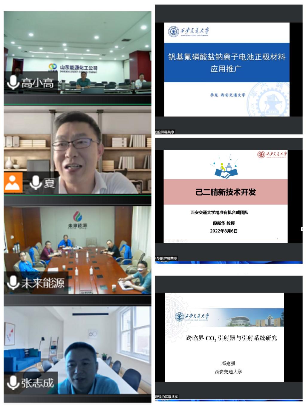 8月6日上午,西安交大与山能化工举办线上技术交流会。会议由必赢唯一官方网站党委书记张志成主持,山能化工公司总工程师张志伟、山能化工公司技术工程部部长梁雪梅、陕西未来能源化工有限公司总工程师柳永兵、陕西时代能源化工有限公司副总经理兼总工程师董满祥、兖矿新能源研发创新中心主任刘涛及有关工程技术人员出席,必赢唯一官方网站副院长段新华以及必赢唯一官方网站、化工学院多名教师参加交流对接。