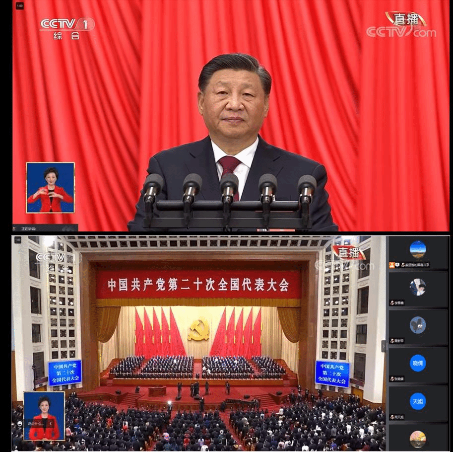 2022年10月16日上午,中国共产党第二十次全国代表大会在北京人民大会堂隆重开幕。中共中央总书记、国家主席、中央军委主席习近平出席大会并发表重要讲话。学院党委第一时间下发学习通知,组织广大党员、党团干部通过电视、网络、广播等媒体收听收看大会直播,同时各党支部通过视频分享、文字实录学习、小组讨论等方式组织学生开展自学研讨。新生党支部全体党员观看大会,在认真学习习近平总书记重要讲话的精神基础上,把握在党的领导下团结带领一代代青年跟党奋斗的光辉历程,把理论学习与个人生活实际紧密结合起来,增强永远跟党走的信仰信念信心。支部全体党员同志一致表示,习近平总书记的讲话振奋人心,并下定决心在今后的工作、学习和生活中,做好本职工作并不断为实现中华民族伟大复兴而贡献自己的一份力量。会后大家对关于习近平总书记讲话进行热议。