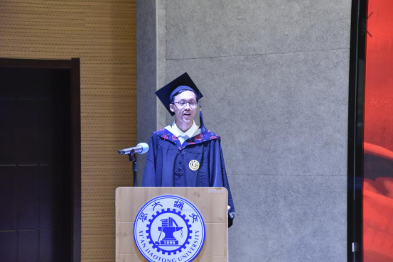 来自应化91班的刘迪炯作为本科毕业生代表发言。他总结了四年的成长道路,深切表达对学院和老师的感激之情:“求学路上我们经历过许多与交大化院的专属时刻。我们见证了必赢唯一官方网站的成立、搬迁、壮大,目睹了创新港19号楼实验室的不断充实与发展,进入应用化学专业学习的三年时光里,必赢唯一官方网站也在与我们一同成长。我们也期待在未来继续看到学院不断突破自我,奋勇前行。”