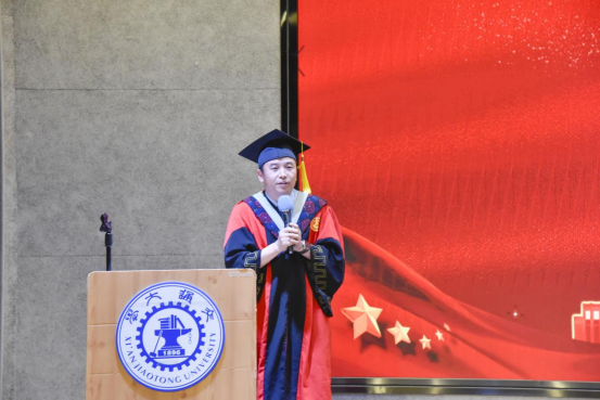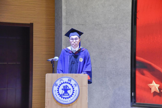 硕士毕业生代表董常熠回顾了硕士三年许多难忘与珍贵的瞬间,向老师们致以最真诚的感谢与祝福,他说:“这三年里,除了个人的成长、心智的成熟、知识的积累与学术的精进,我想,对于我们来说,更大的收获是:我们“被爱”的三年”。