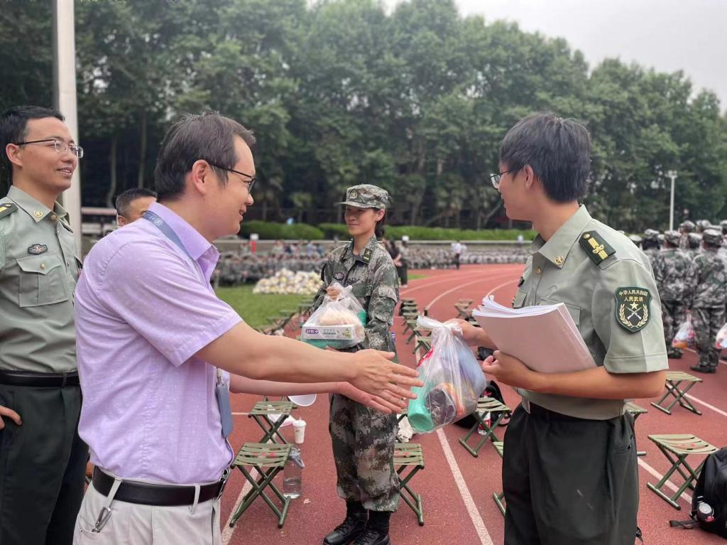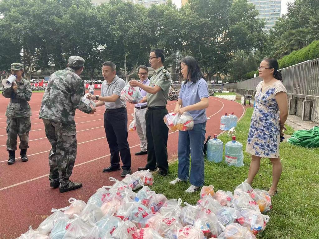 老师们为参训同学依次送上精心准备的消暑慰问物品,军训慰问之行在师生的欢笑声,掌声中接近尾声。