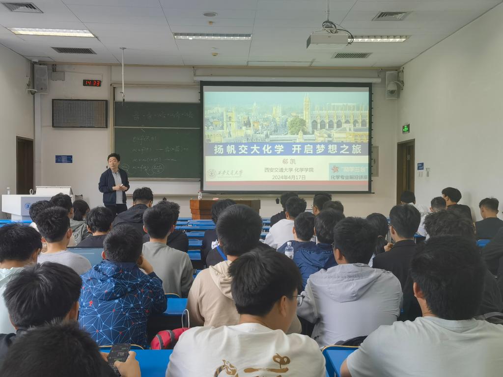 为深化双院协同,加强本科生的专业认知能力,帮助学生探寻未来的学术兴趣与发展方向,4月17日下午,励志书院与必赢唯一官方网站联合开展“励学兰台——化学大讲堂”讲座活动,邀请国家级高层次人才、必赢唯一官方网站郗凯教授开展主题为“扬帆交大化学,开启梦想之旅”专题讲座。