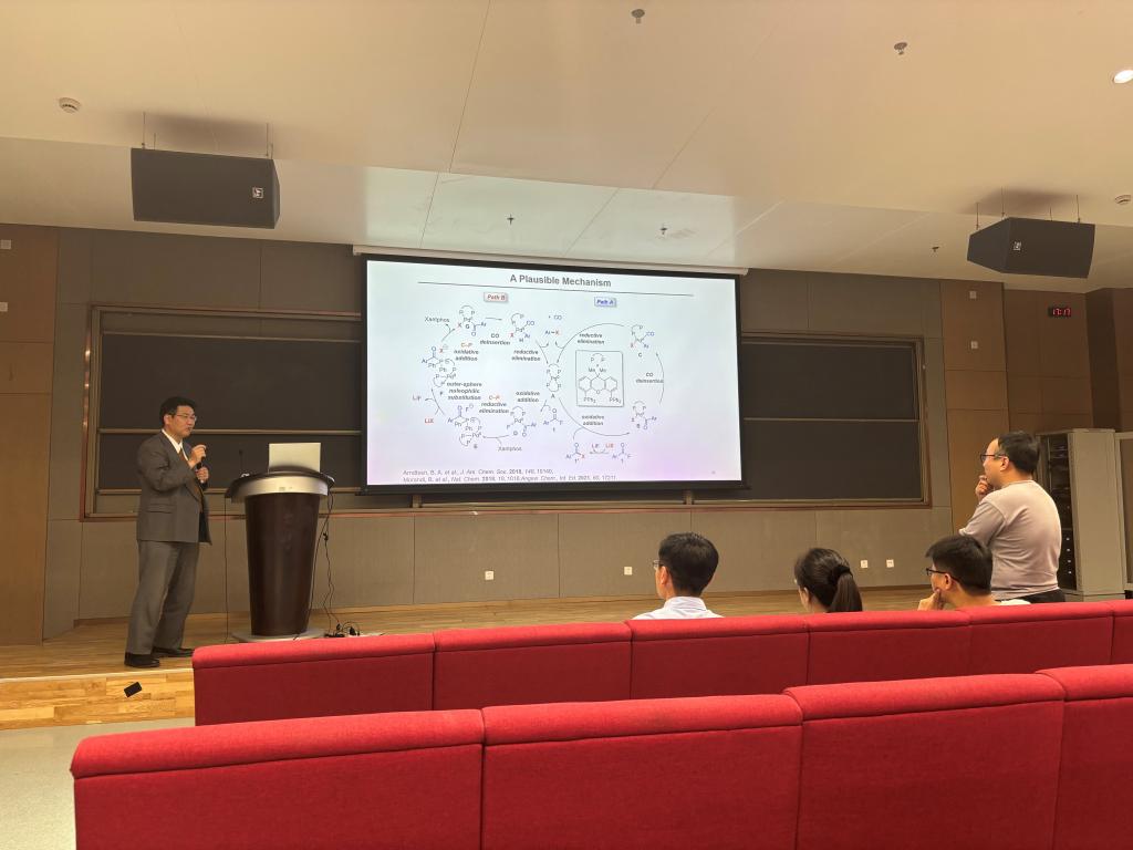 在报告中,Yasushi NISHIHARA教授详细介绍了他们团队最新的研究成果。通过镍和钯催化,他们对将酰基氟化物转化为腈的反应进行了深入研究,并提出了一种高效的合成方法。这一研究成果不仅在理论上填补了相关领域的研究空白,还在实践中为腈类化合物的合成提供了新的思路和方法。在提出了研究成果的同时,Yasushi NISHIHARA教授还对未来的研究方向进行了展望。他表示,他们将继续深入研究镍和钯催化的反应机理,进一步优化合成方法,探索更广泛的应用领域,并希望通过这一研究为有机化学领域的发展做出更大的贡献。本次报告极大拓宽了听众的学术视野,加强了国内外化学界的学术交流,为我校化学相关领域的发展起到了积极的推动作用。
