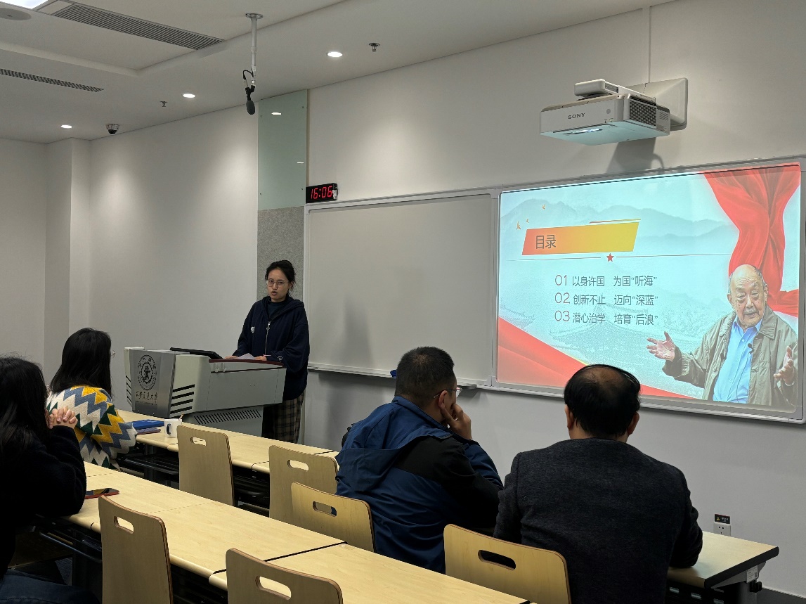 会上,任怡同志以“一生听海,一心报国”为主题带领全党同志学习了杨士莪同志的生平事迹和精神品质。一个人的梦想能有多久?久到能够穿越一生。杨士莪同志在他所从事的水声定位领域中取得了卓越成就,始终保持对党的忠诚与热爱,用实际行动诠释了对国家和人民的赤诚之心。他始终以党员标准严格要求自己,用一生坚守教育强国、科技强国和人才强国事业,作为“时代楷模”为党和人民的事业奉献了毕生精力。