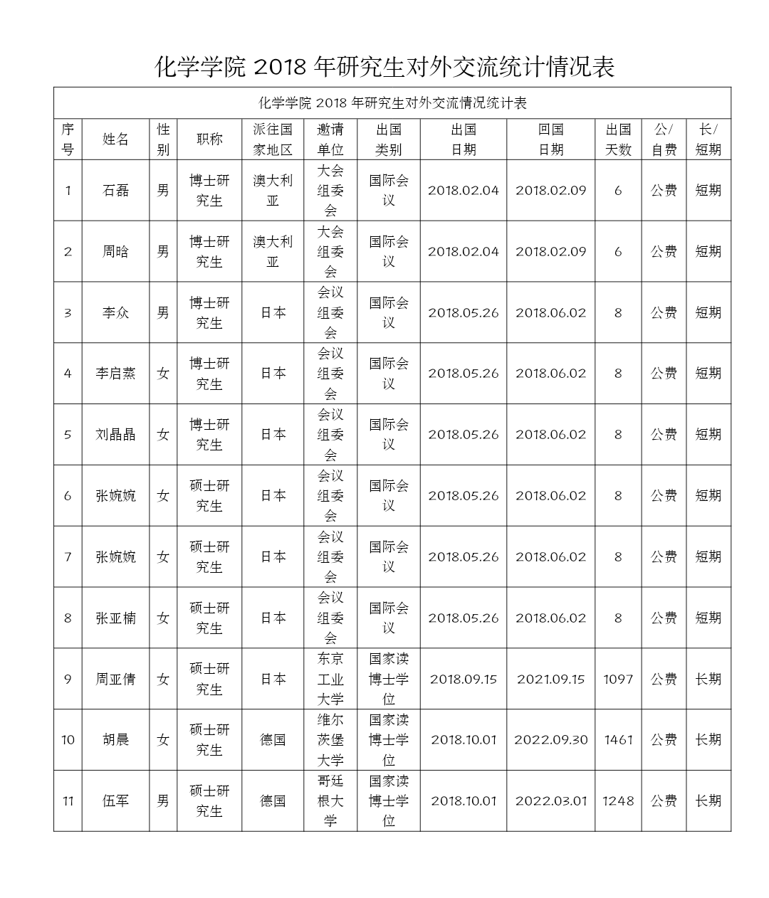 必赢唯一官方网站2018年研究生对外交流统计情况表