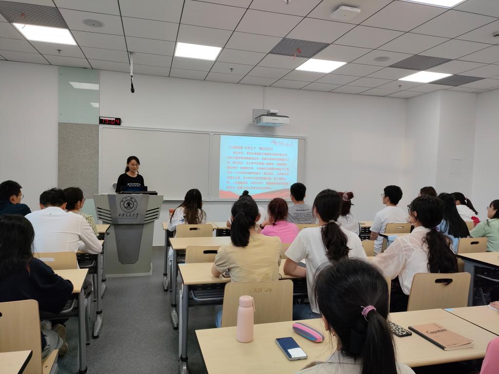 最后,团委副书记石杨根以《伟大的转折——遵义会议》为题向同学们讲授了一场生动鲜活的党史学习教育主题党课。课程详细讲述了遵义会议的背景、内容、意义,从各方面论证了为何遵义会议是伟大的转折点。在课程讲授中,石杨根通过形式多样的课堂互动提高了学生的参与感,通过分享自己参观遵义会议旧址的体会,拉近了和学生之间的距离感。在课程结束时,石杨根表示,学历史不能只看历史的大框架,要去深挖里边所蕴含的精神。