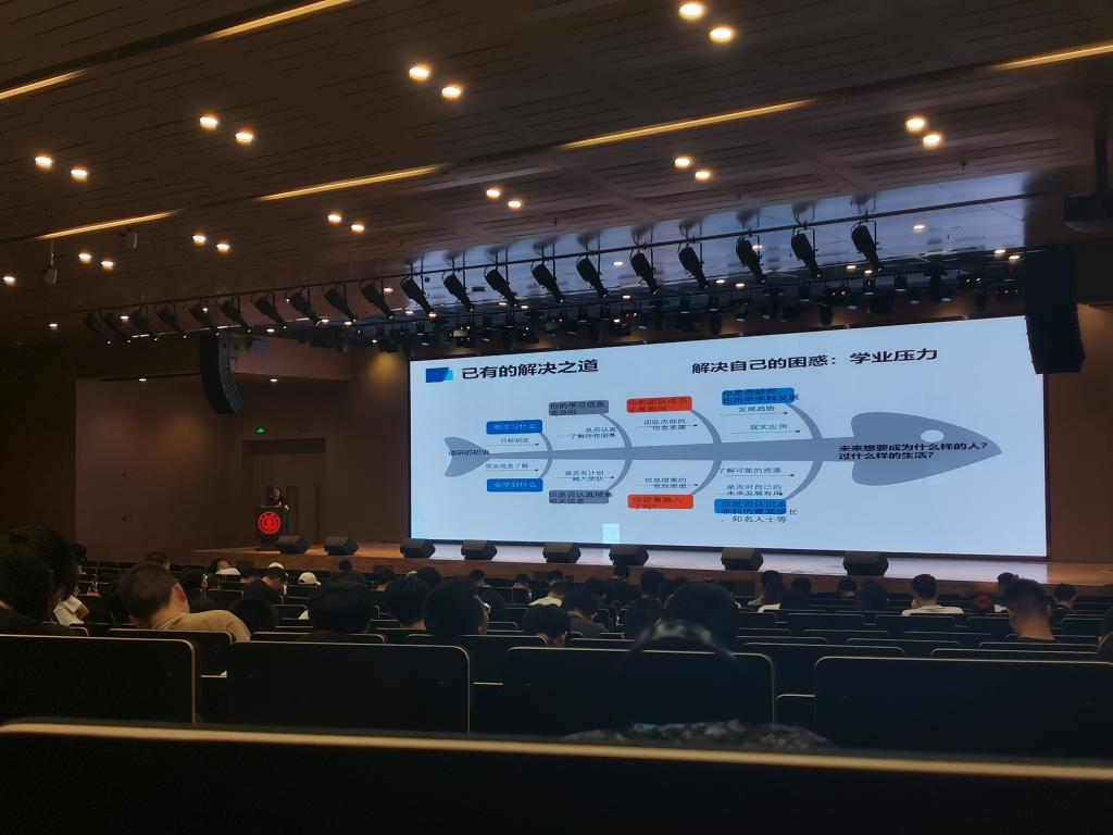 心理健康教育是提高大学生心理素质、促进其身心健康和谐发展的有效途径,也是高校思想政治工作的重要抓手。进入研究生阶段,新生可能会面临来自学业压力、社交关系、情绪管理等各个方面的困扰。因此,新生养成系列活动的第一课特邀董研林副教授为新生开展题为《突破自我勇攀高峰》的心理健康讲座,董老师以目前学生广泛关注的问题如“卷与躺”“学习与生活”“自我认同感”为抓手,深入剖析了当前大学生普遍遇到的困惑与难题,鼓励同学们直面心理健康问题,为大家提供应对压力和情绪困扰的技巧与方法,介绍分享校园心理服务的相关资源与途径。