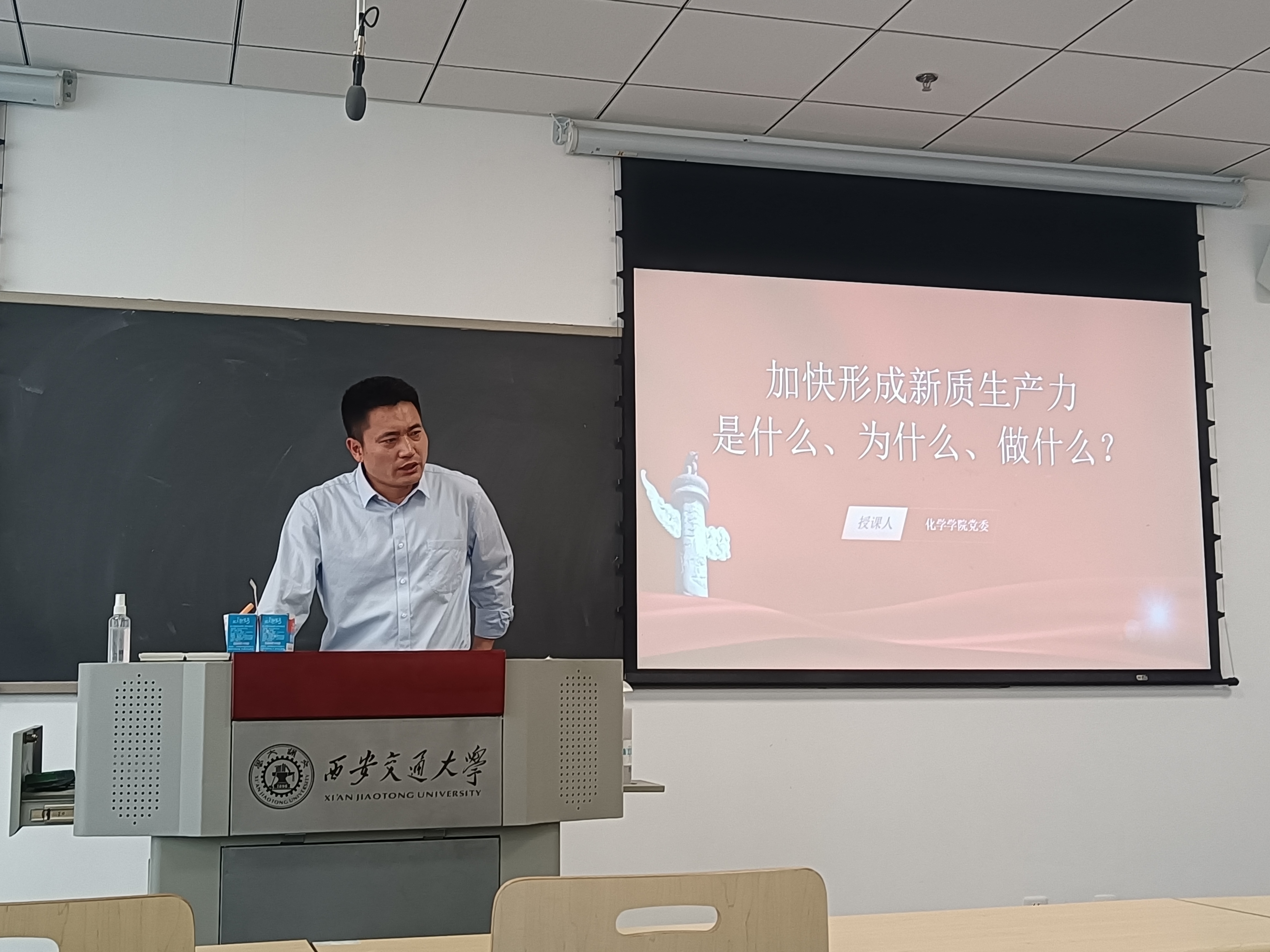 本次会议由新能源材料师生联合党支部书记杨晓龙老师主持。首先,必赢唯一官方网站副院长张彦峰老师为党员同志讲党课,课程主题为“加快形成新质生产力,是什么、为什么、做什么”。张彦峰副院长不仅讲述了新质生产力是什么,还深入浅出地解释了新质生产力的深刻内涵、主要特征等方面,对于研究生党员,张院长更是关于职业规划、未来选择提出自己衷心的建议。